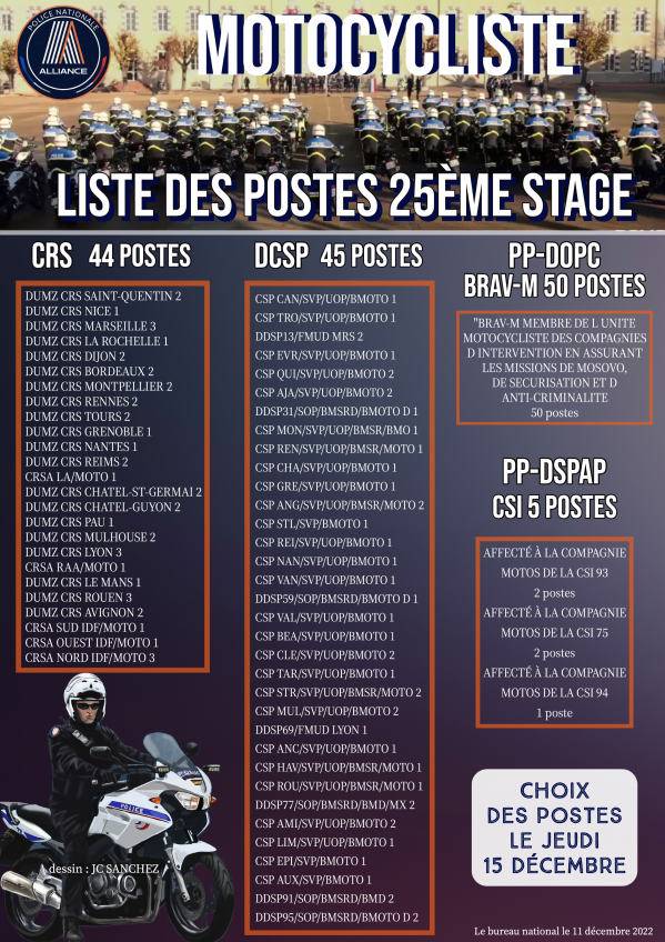 LISTE DE POSTES 25EME STAGE MOTOCYCLISTE Publication : 11 décembre 2022 Lire la suite... Bureau National
